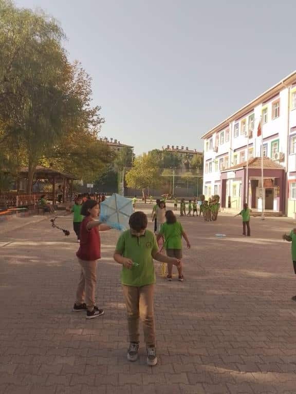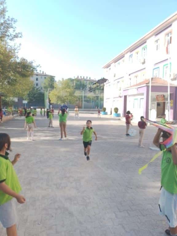 Uçurtma hakkında yapılan bilgilendirici çalışmaların ardından velilerimizin de katılımıyla öğrencilerimiz emek vererek kendi uçurtmalarını tasarladı. Etkinlik günü ise gökyüzü rengârenk uçurtmalarla şenlenirken, öğrencilerimiz yaptıkları uçurtmaları uçurmanın sevincini yaşadı.