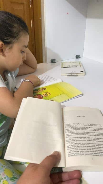 Bu özel etkinlikte aileler, evlerinde çocuklarıyla birlikte kitap okuyarak hem keyifli vakit geçiriyor hem de okuma alışkanlığını aile ortamında pekiştiriyor.